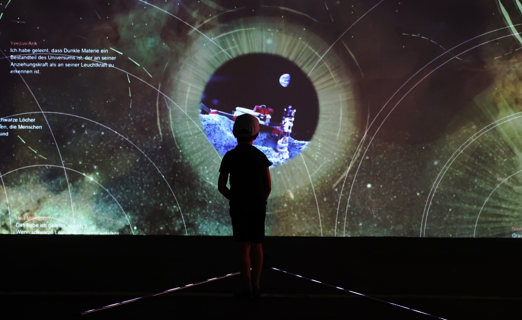 "Space Messengers AI" is an immersive SciArt experience that merges light, sound, motion, and responsive artificial intelligence technology to create a dynamic multisensory display with audience input. At the heart of Space Messengers AI are thousands of human-generated messages—reflections from youth and communities from around the world.